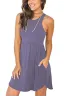 - Features: round neckline (no necklace included),racerback sleeveless,elastic band at waist,two side-seam pockets which deep enough for a card or a lip balm,above knee length,irregular hem.