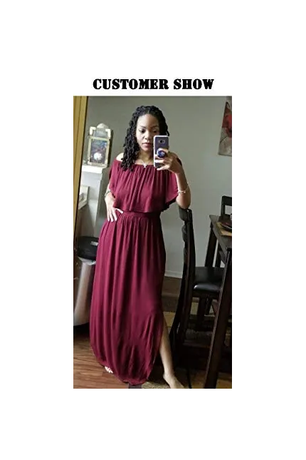 - Off the shoulder dress features: casual and higher waist line with ruffle,long side split with pockets,loose fit