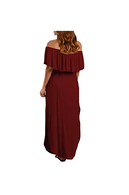 - Off the shoulder dress features: casual and higher waist line with ruffle,long side split with pockets,loose fit