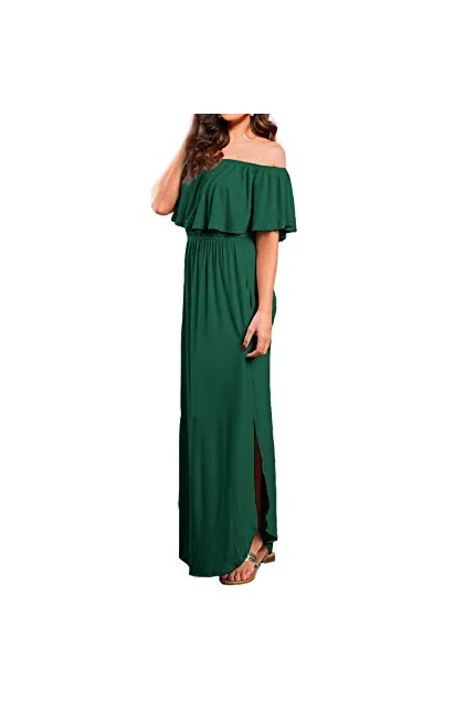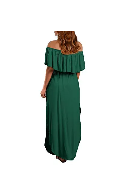 - Maxi Dress Features: Casual and Higher Waist Line with Ruffle,Long Side Split with Pockets,Loose Fit
