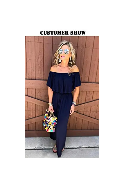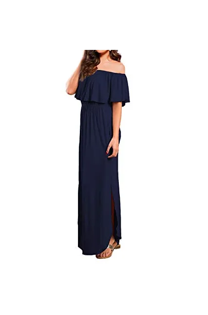 - Off the shoulder dress features: casual and higher waist line with ruffle,long side split with pockets,loose fit