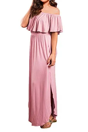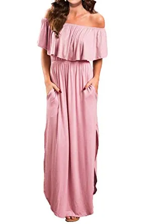 - Off the shoulder dress features: casual and higher waist line with ruffle,long side split with pockets,loose fit