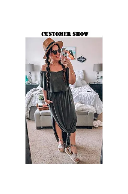 - Off the shoulder dress features: casual and higher waist line with ruffle,long side split with pockets,loose fit