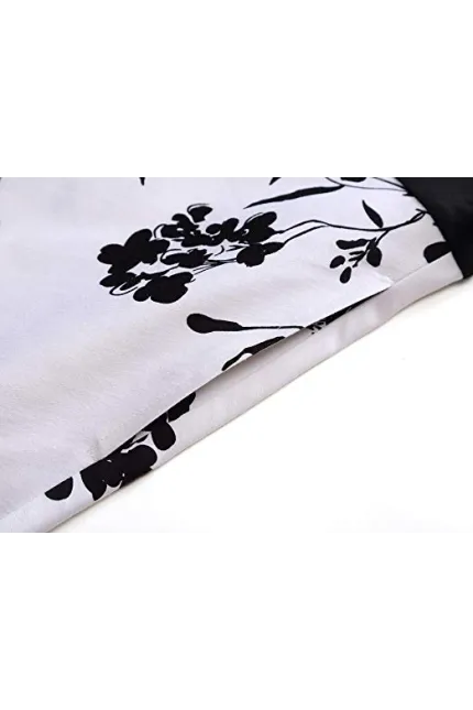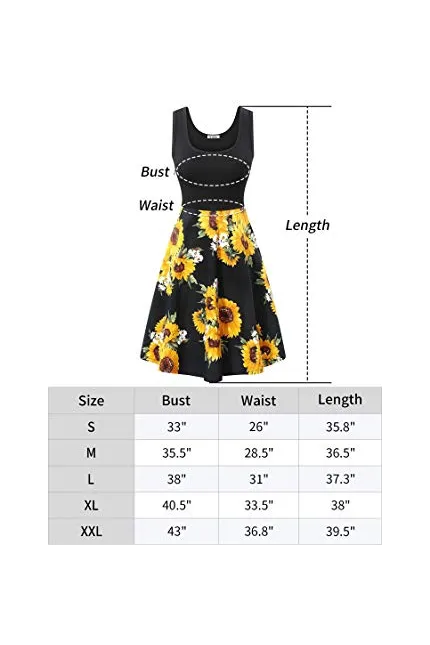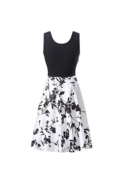 - Features sleeveless, round neck, floral skirt bottom, with two open pockets