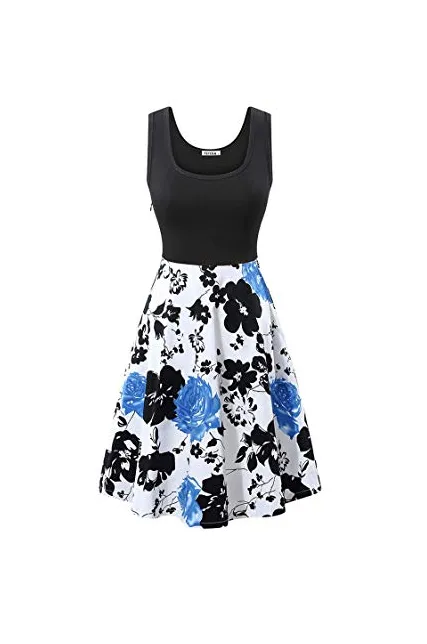 VETIOR Women's Vintage Scoop Neck Midi Dress Sleeveless A-line Cocktail Party Tank Dress