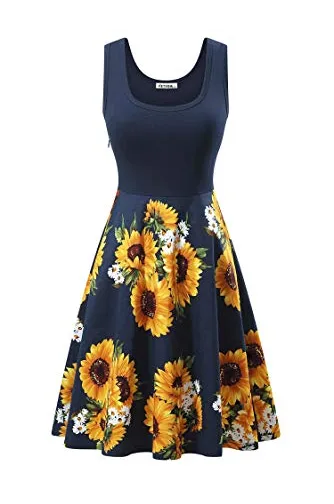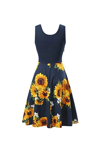 VETIOR Women's Vintage Scoop Neck Midi Dress Sleeveless A-line Cocktail Party Tank Dress
