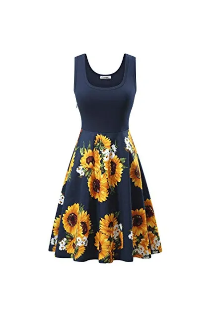VETIOR Women's Vintage Scoop Neck Midi Dress Sleeveless A-line Cocktail Party Tank Dress