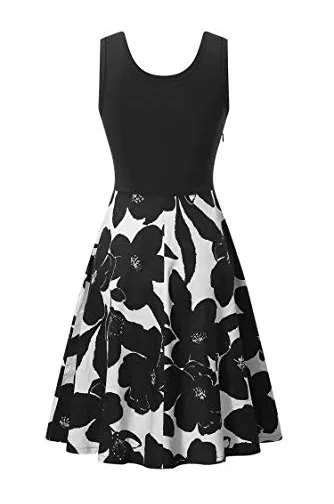VETIOR Women's Vintage Scoop Neck Midi Dress Sleeveless A-line Cocktail Party Tank Dress