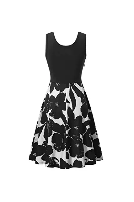 VETIOR Women's Vintage Scoop Neck Midi Dress Sleeveless A-line Cocktail Party Tank Dress