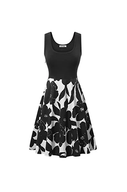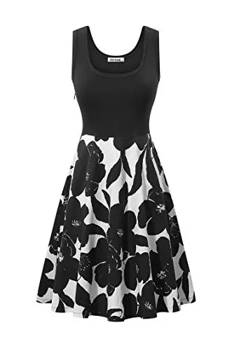 VETIOR Women's Vintage Scoop Neck Midi Dress Sleeveless A-line Cocktail Party Tank Dress