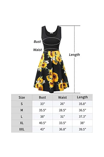 VETIOR Women's Vintage Scoop Neck Midi Dress Sleeveless A-line Cocktail Party Tank Dress