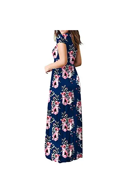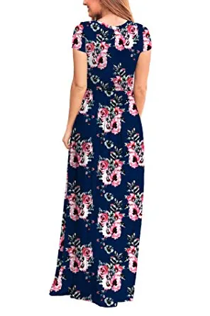 - Features: Round neck,Floral Print,short sleeves,two side pockets,floor length,elastic at waist,not lined,maxi dresses,casual basic style.