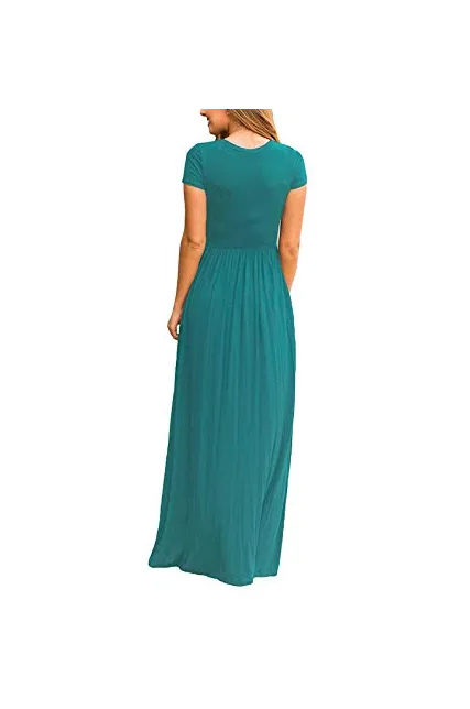 - Features: Round neck,short sleeves,two side pockets,floor length,elastic at waist,not lined,maxi dresses,casual basic style.