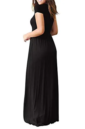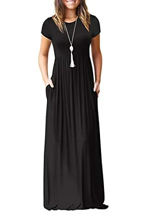 - Features: Round neck,short sleeves,two side pockets,floor length,elastic at waist,not lined,maxi dresses,casual basic style.
