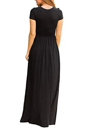 - Features: Round neck,short sleeves,two side pockets,floor length,elastic at waist,not lined,maxi dresses,casual basic style.