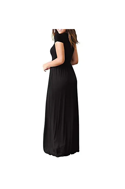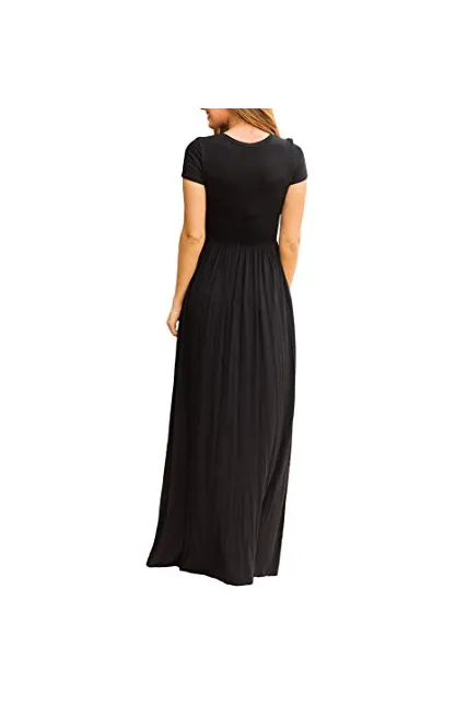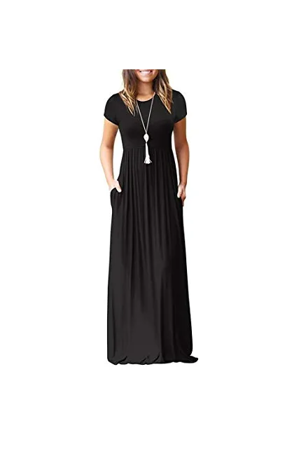 - Features: Round neck,short sleeves,two side pockets,floor length,elastic at waist,not lined,maxi dresses,casual basic style.