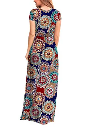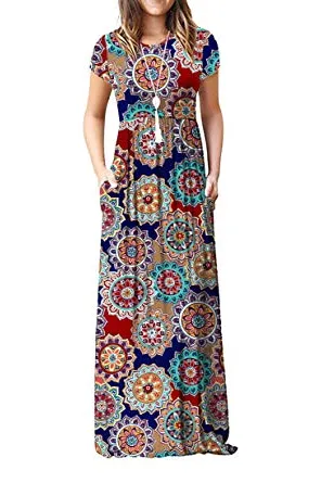 - Features: Round neck,Floral Print,short sleeves,two side pockets,floor length,elastic at waist,not lined,maxi dresses,casual basic style.