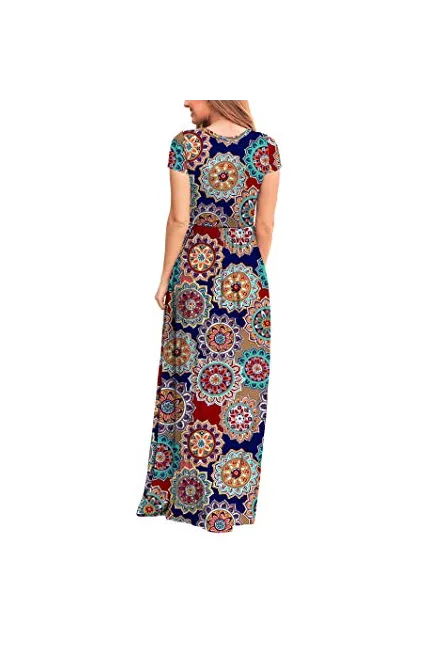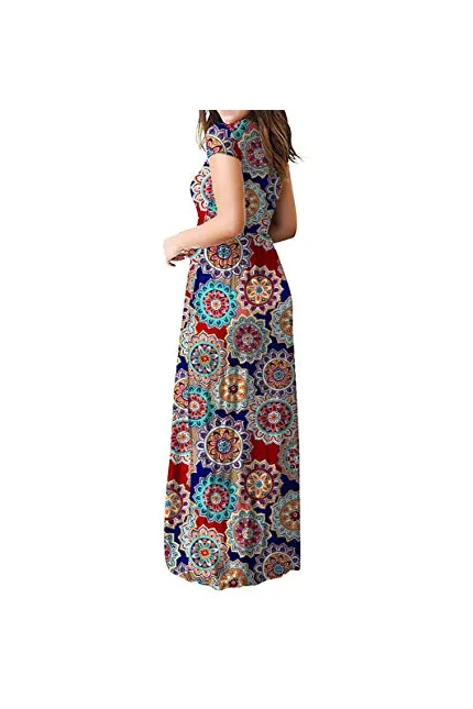- Features: Round neck,Floral Print,short sleeves,two side pockets,floor length,elastic at waist,not lined,maxi dresses,casual basic style.