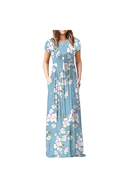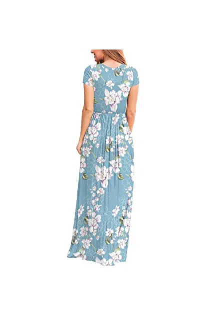 - Features: Round neck,Floral Print,short sleeves,two side pockets,floor length,elastic at waist,not lined,maxi dresses,casual basic style.