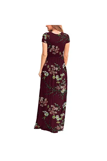 - Features: Round neck,Floral Print,short sleeves,two side pockets,floor length,elastic at waist,not lined,maxi dresses,casual basic style.