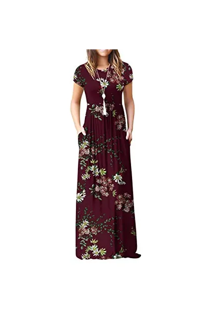 - Features: Round neck,Floral Print,short sleeves,two side pockets,floor length,elastic at waist,not lined,maxi dresses,casual basic style.