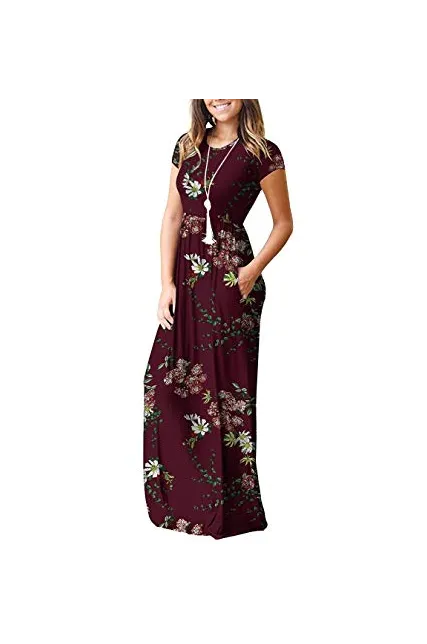 - Features: Round neck,Floral Print,short sleeves,two side pockets,floor length,elastic at waist,not lined,maxi dresses,casual basic style.