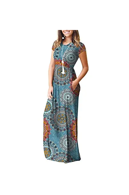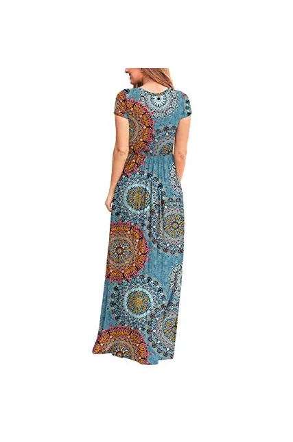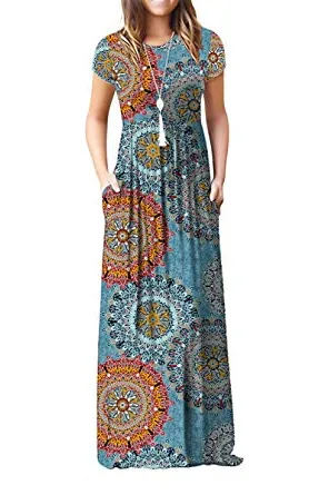 - Features: Round neck,Floral Print,short sleeves,two side pockets,floor length,elastic at waist,not lined,maxi dresses,casual basic style.