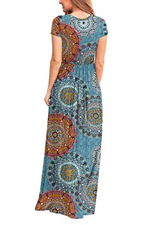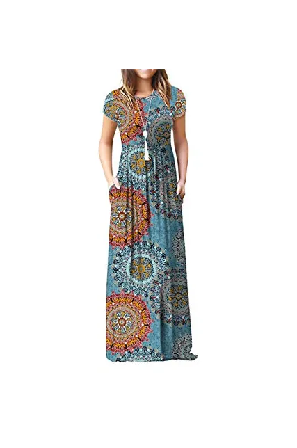 - Features: Round neck,Floral Print,short sleeves,two side pockets,floor length,elastic at waist,not lined,maxi dresses,casual basic style.
