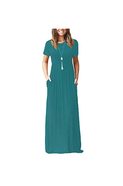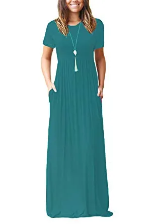 - Features: Round neck,short sleeves,two side pockets,floor length,elastic at waist,not lined,maxi dresses,casual basic style.