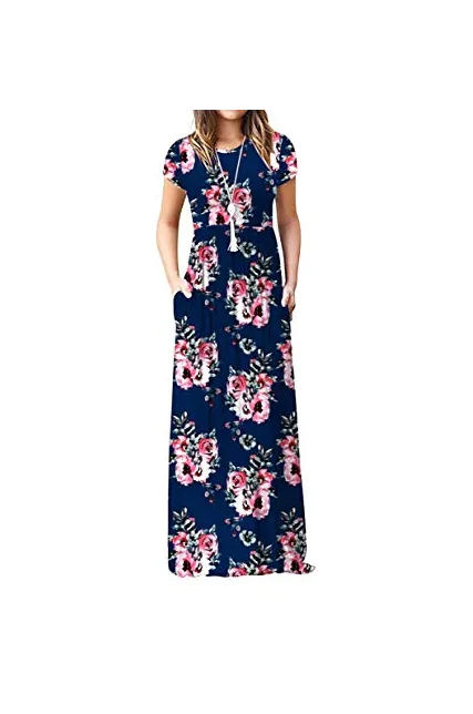 - Features: Round neck,Floral Print,short sleeves,two side pockets,floor length,elastic at waist,not lined,maxi dresses,casual basic style.
