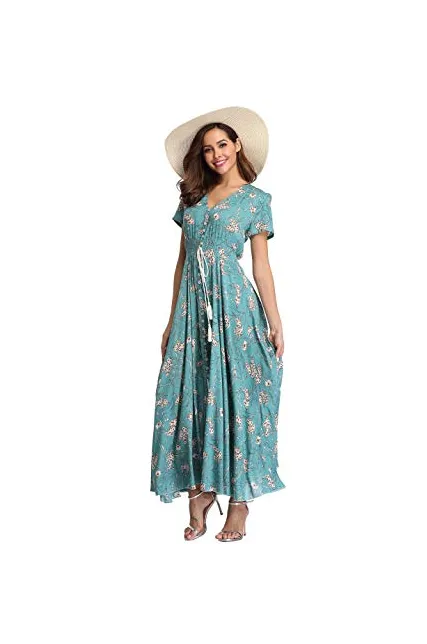 - Flower printed maxi dresses for women, good choice for a summer Beach party, Casual, Office or attending a wedding.