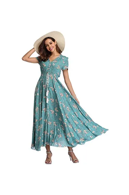 VintageClothing Women's Floral Maxi Dresses Boho Button Up Split Beach Party Dress