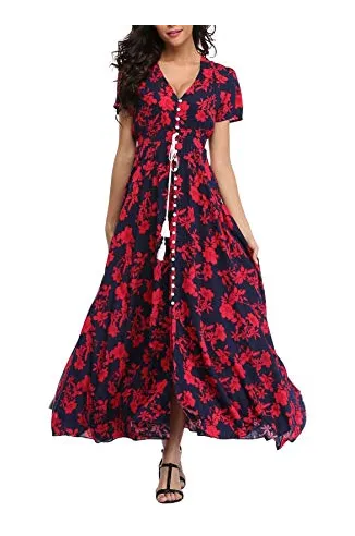 VintageClothing Women's Floral Maxi Dresses Boho Button Up Split Beach Party Dress
