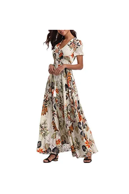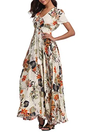 - Flower printed maxi dresses for women, good choice for a summer Beach party, Casual, Office or attending a wedding.