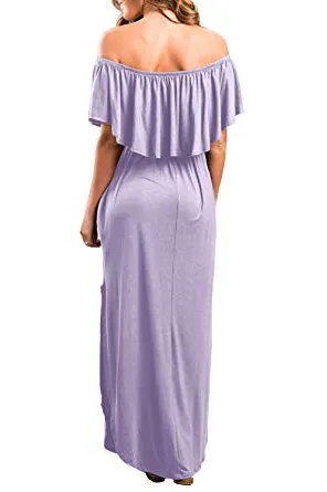 - The design of off shoulder is not too tight or too loose. Side split design makes the dress spins beautifully. Look perfect with this maxi dress by pairing it with your favorite necklace and sandal.