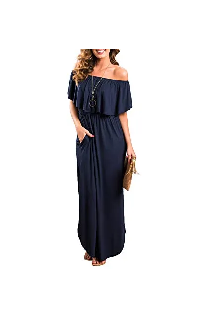 - The design of off shoulder is not too tight or too loose. Side split design makes the dress spins beautifully. Look perfect with this maxi dress by pairing it with your favorite necklace and sandal.