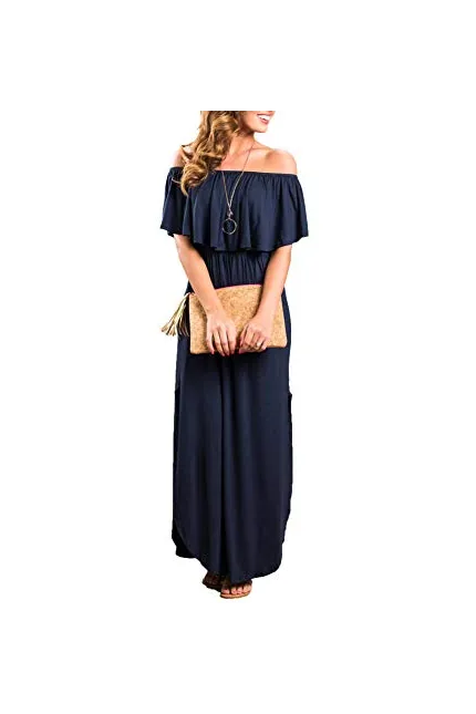 - The design of off shoulder is not too tight or too loose. Side split design makes the dress spins beautifully. Look perfect with this maxi dress by pairing it with your favorite necklace and sandal.