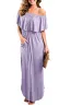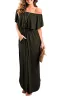 - The design of off shoulder is not too tight or too loose. Side split design makes the dress spins beautifully. Look perfect with this maxi dress by pairing it with your favorite necklace and sandal.
