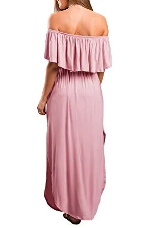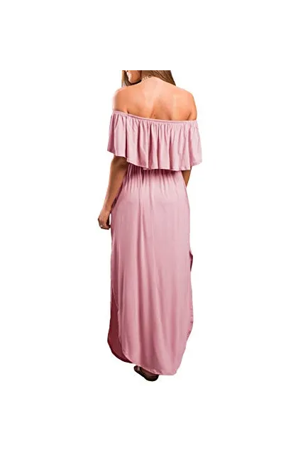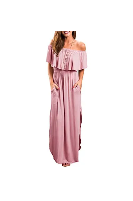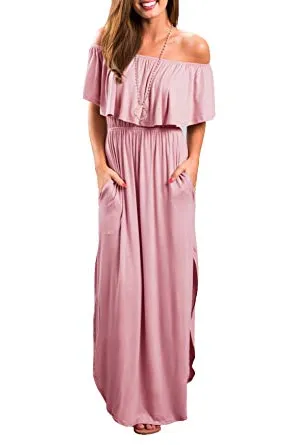 - Features: off shoulder, short sleeve, ruffles, vintage, side split, loose fit, casual wear, long sundress, swing dress, side slit party maxi dress, long beach dress, high waist both sides split, tunic waist, strapless maxi long dress, Summer casual long shift dress.