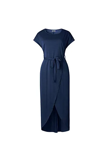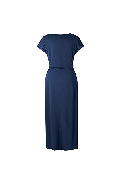 - Slit Maxi Dress, Sexy Split Design,Elastic Waist, Belted Waist, Jersey Long Dress, Cap Sleeve