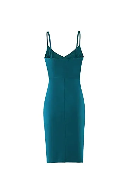 Zalalus Women's Elegant Spaghetti Straps Deep V Neck Sleeveless Bodycon Party Dress