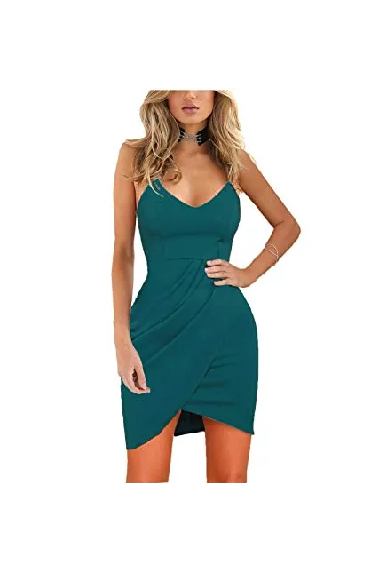 - DESIGN: invisible zip, spaghetti Strap, deep V neck, backless, sleeveless, bodycon, solid color, elegant and sexy, above the knee length, asymmetrical,bodycon cocktail party dress,fitted mini dress.