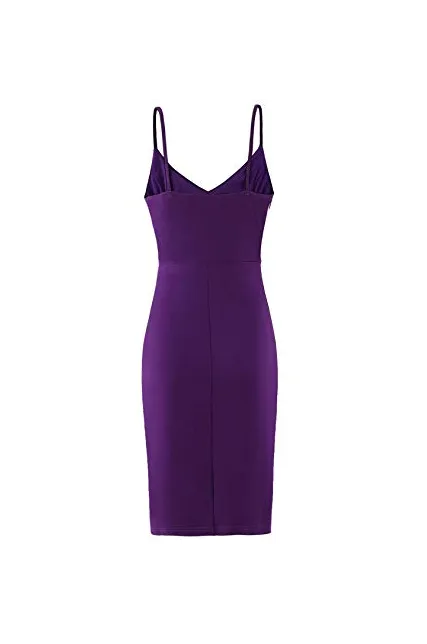 Zalalus Women's Elegant Spaghetti Straps Deep V Neck Sleeveless Bodycon Party Dress