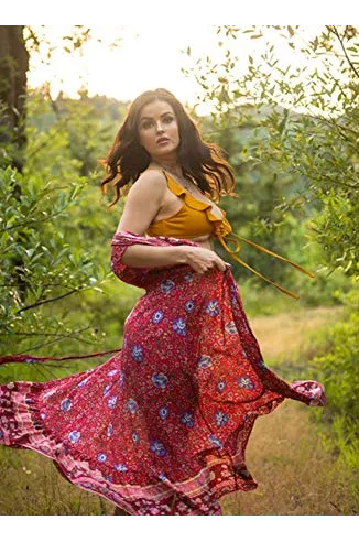 - This maxi features a wrap design, v-neckline,frill hemline and short butterfly sleeves making it an easy-to-wear statement piece; UNLINED.
