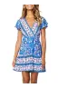ZESICA Women’s Summer Wrap V Neck Bohemian Floral Print Ruffle Swing A Line Beach Mini Dress