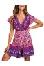 ZESICA Women’s Summer Wrap V Neck Bohemian Floral Print Ruffle Swing A Line Beach Mini Dress