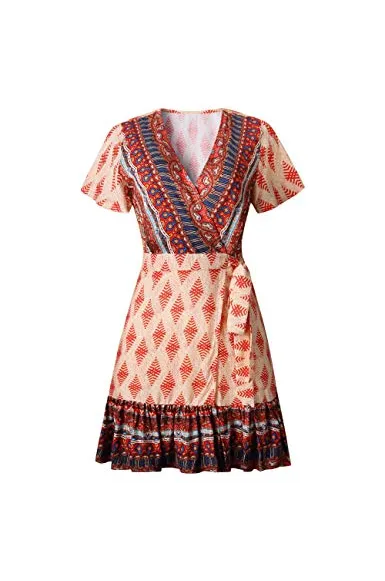 - Calling all Boho loves, you need our "Amazing Grace Dress" in your wardrobe.WRAP STYLE DRESS--Deep V Neck,Cap sleeve,Ruffle hemline,Floral print,Tie Waist,fit and flare dress in high wastline perfectly shows your good figure
