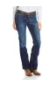 - Bootcut leg jean in hand-sanded finish featuring thick contrast stitching