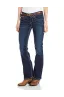 - Bootcut leg jean in hand-sanded finish featuring thick contrast stitching