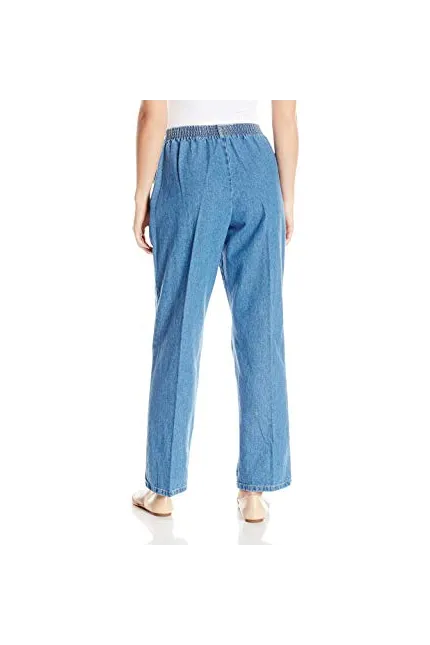 - Cotton pull-on pant with high-rise elastic waist, front pleat, and front slant pockets